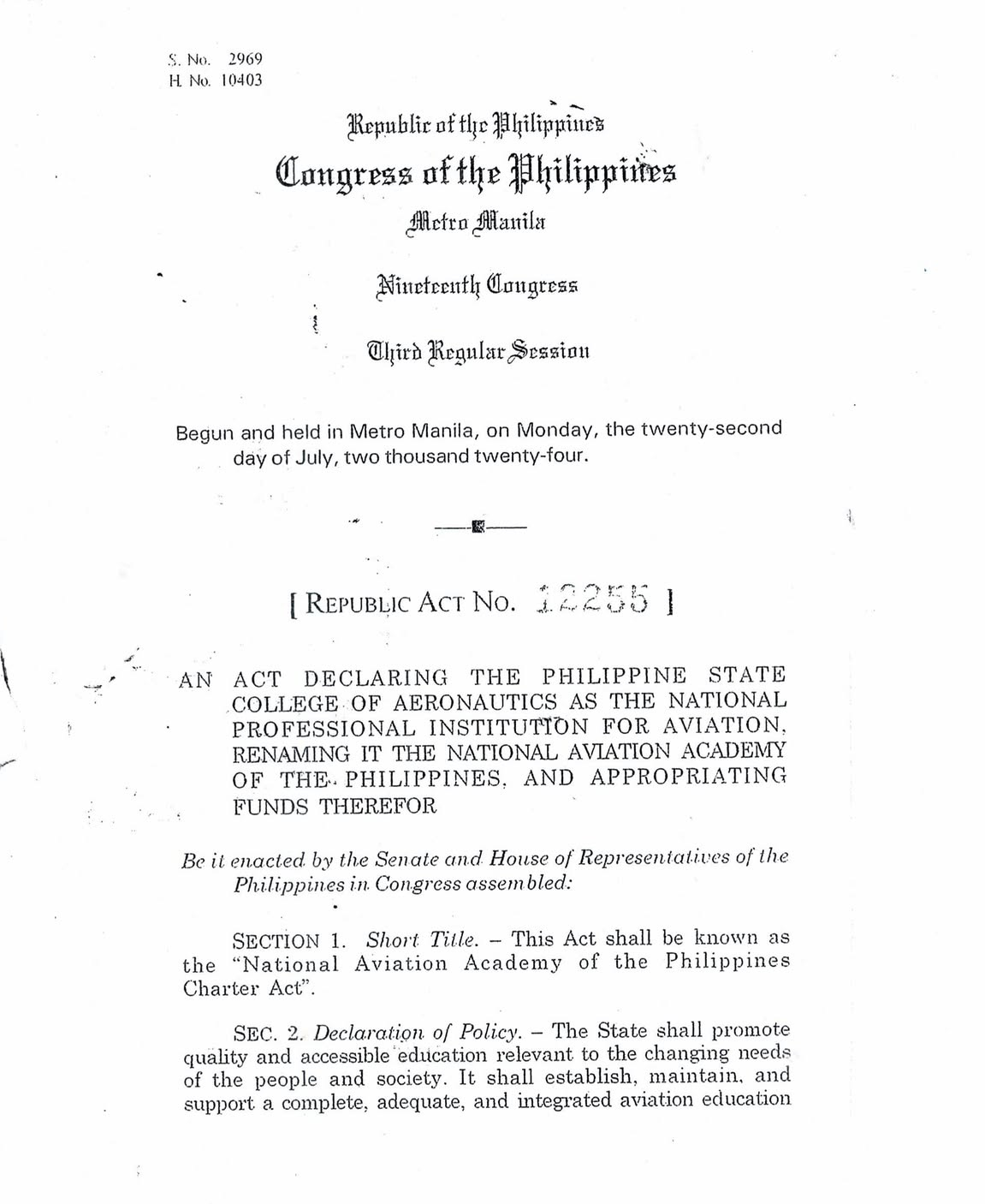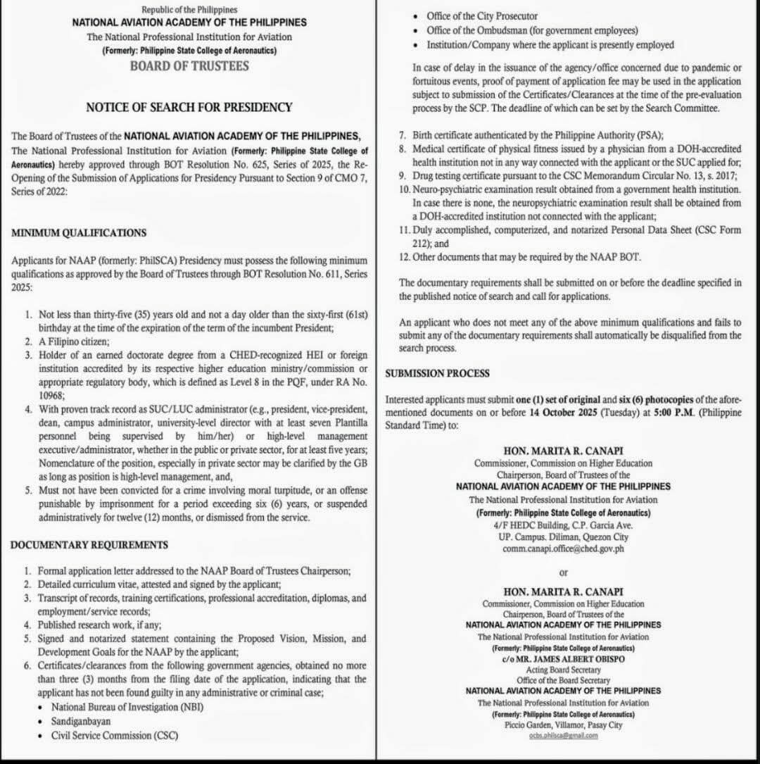 RA 12255 (2025) declaring the Philippine State College of Aeronautics as the NATIONAL PROFESSIONAL INSTITUTION FOR AVIATION, renaming it as the National Aviation Academy of the Philippines (NAAP)!