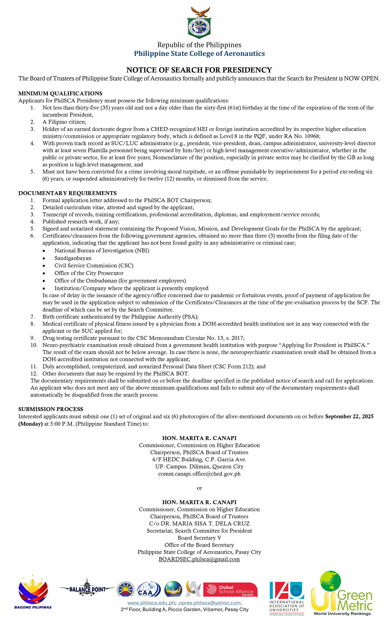 The Search for PhilSCA President Now Open!