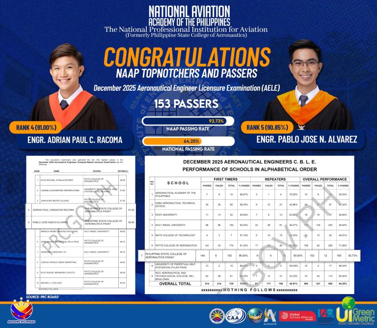Congratulations NAAP Topnotchers and Passers – December 2025 Aeronautical Engineer Licensure Examination (AELE)