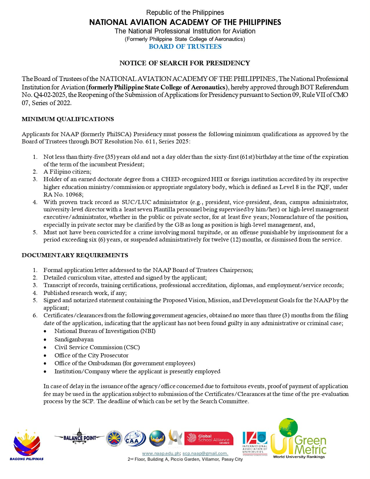 RA 12255 (2025) declaring the Philippine State College of Aeronautics as the NATIONAL PROFESSIONAL INSTITUTION FOR AVIATION, renaming it as the National Aviation Academy of the Philippines (NAAP)!