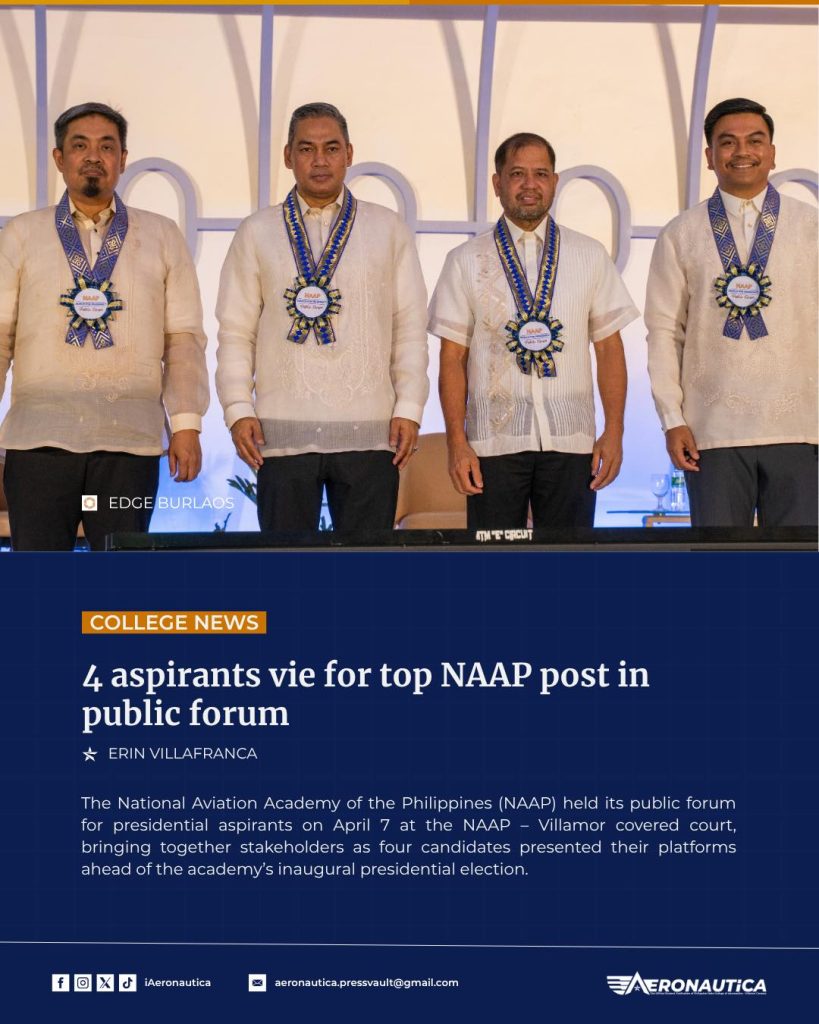 The National Aviation Academy of the Philippines (NAAP) held its public forum for presidential aspirants on April 7 at the NAAP – Villamor covered court, bringing together stakeholders as four candidates presented their platforms ahead of the academy’s inaugural presidential election.