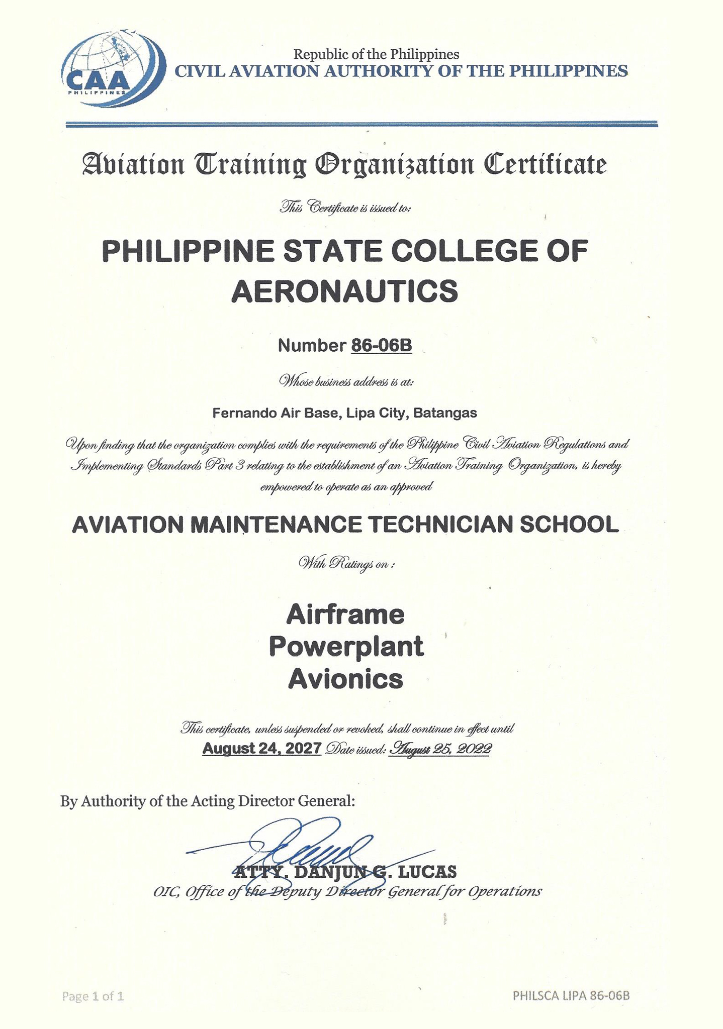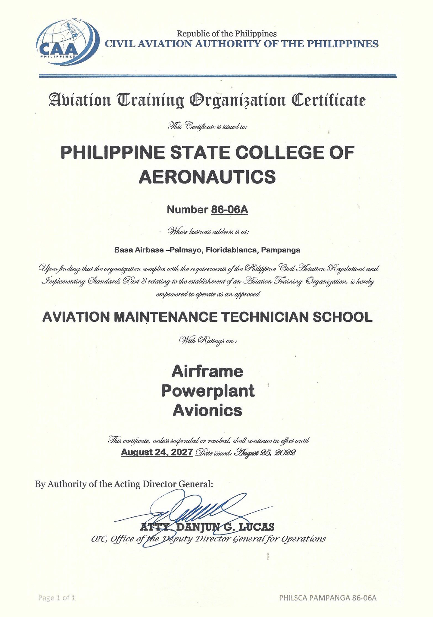 BS AIRCRAFT MAINTENANCE TECHNOLOGY, BS AVIATION ELECTRONICS TECHNOLOGY, AND BS AVIATION TOURISM