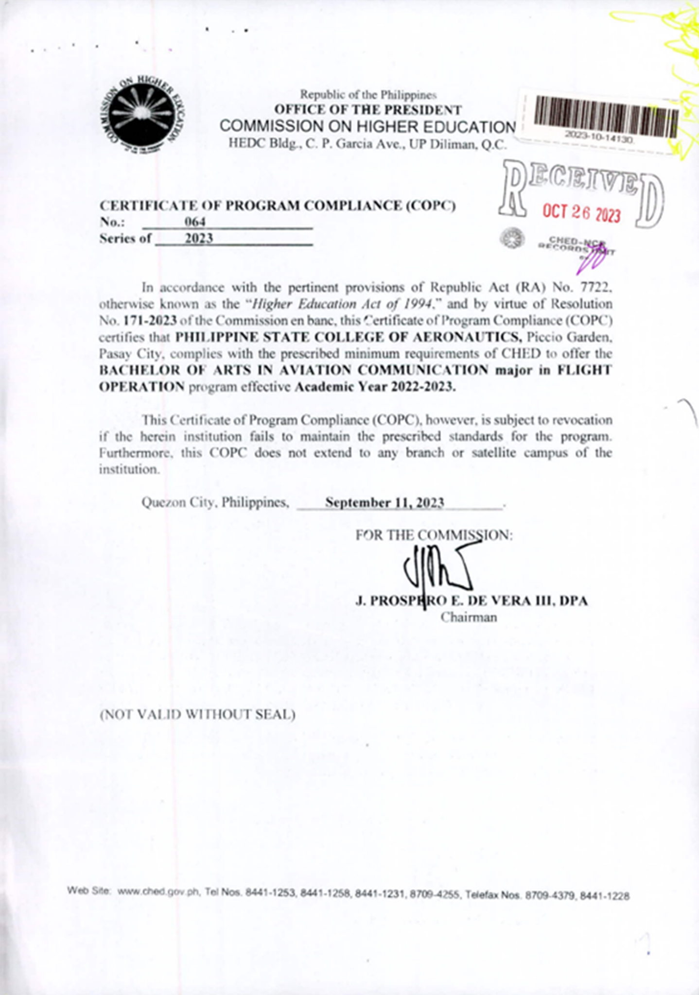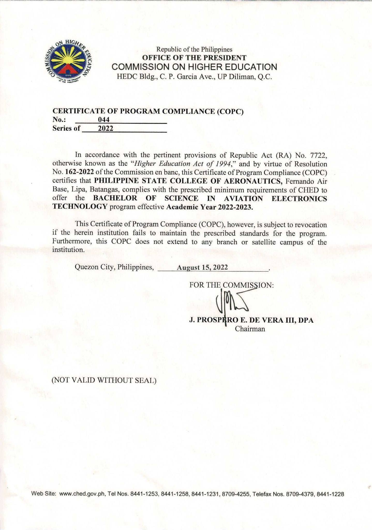 COMPLIANCE (COPC) IN BS AIR TRANSPORTATION,