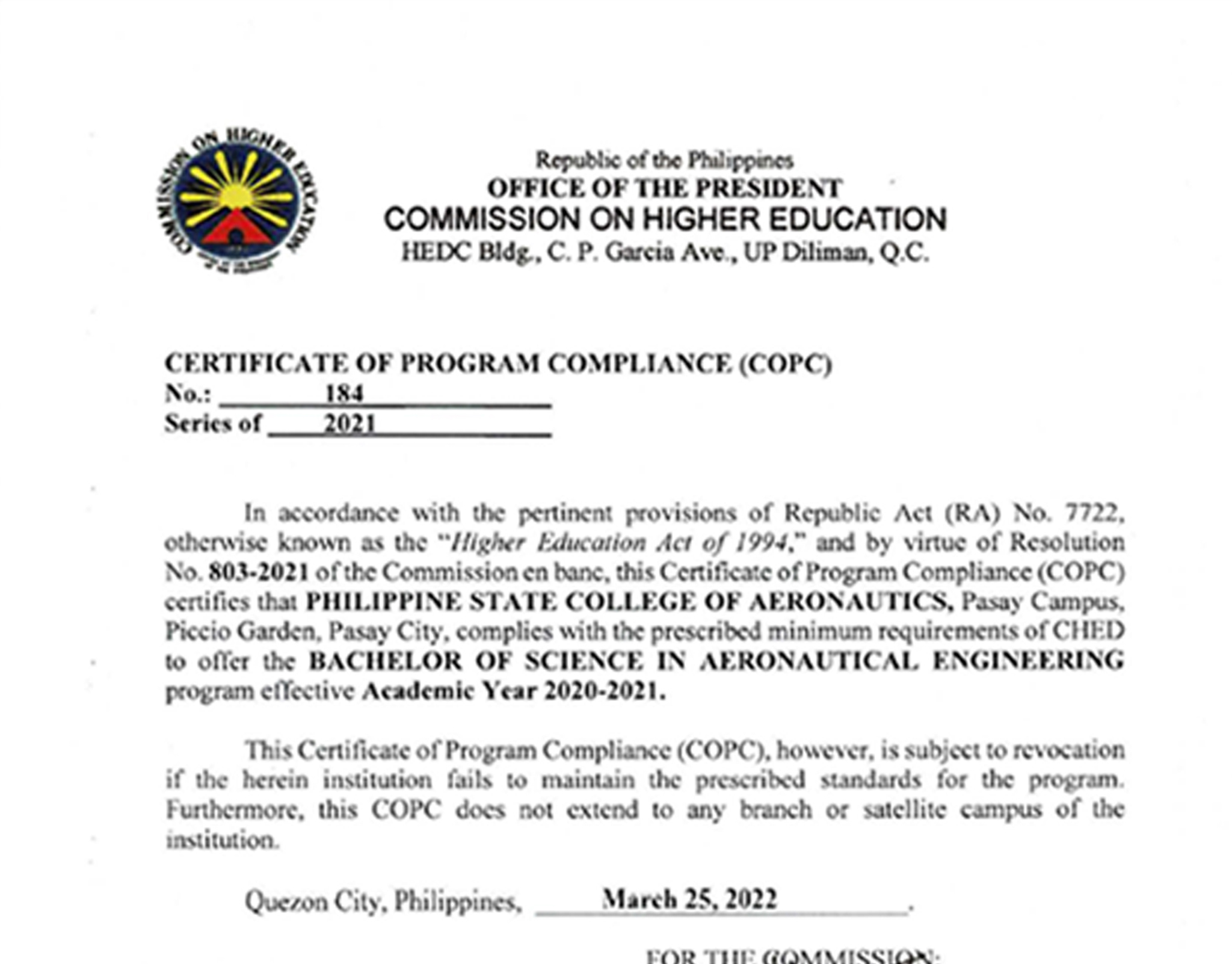 The Professional Regulation Commission (PRC) has awarded the Philippine State College of Aeronautics the title of "No. 1 Aeronautical ...